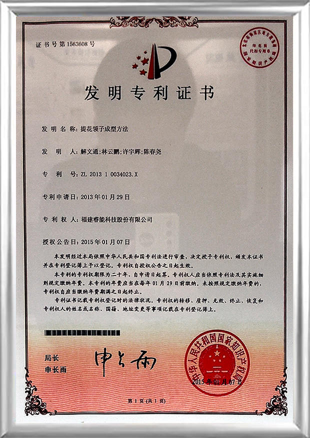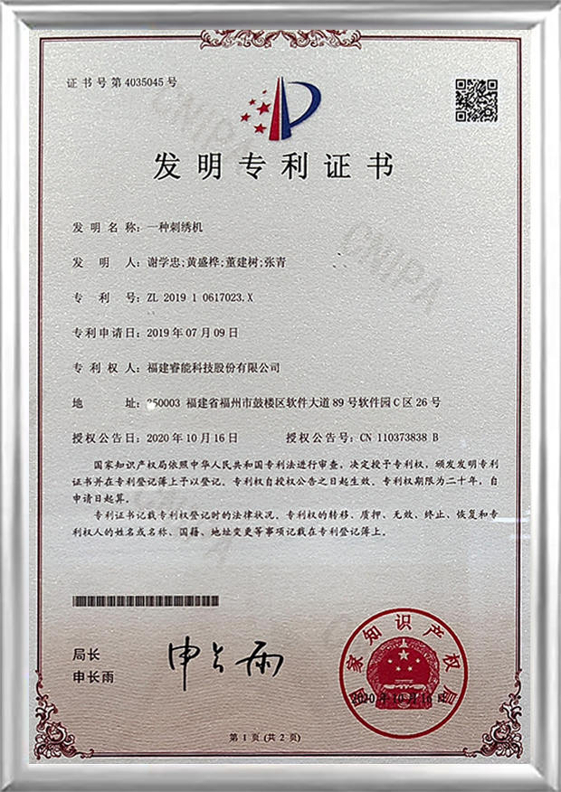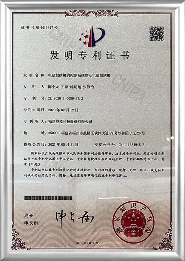 ● Trung tâm công nghệ của công ty đã được công nhận là "Trung tâm Nghiên cứu Công nghệ Kỹ thuật Doanh nghiệp Điều khiển Thông minh Thiết bị Dệt may Phúc Kiến".