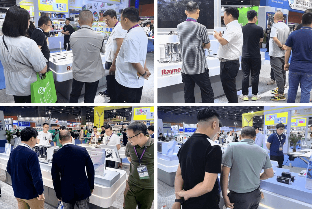 Khách tham quan đổ về gian hàng của Raynen Technology. Các đồng nghiệp của nhóm Raynen đã nhiệt tình giải đáp mọi câu hỏi và trình diễn các chức năng cũng như tính năng khác nhau của các sản phẩm khác nhau. Khu trưng bày sản phẩm, khu trải nghiệm, khu đàm phán của gian hàng được vây quanh bởi những du khách quan tâm đến công nghệ mới. Mọi người dừng lại để xem, trải nghiệm và giao lưu.