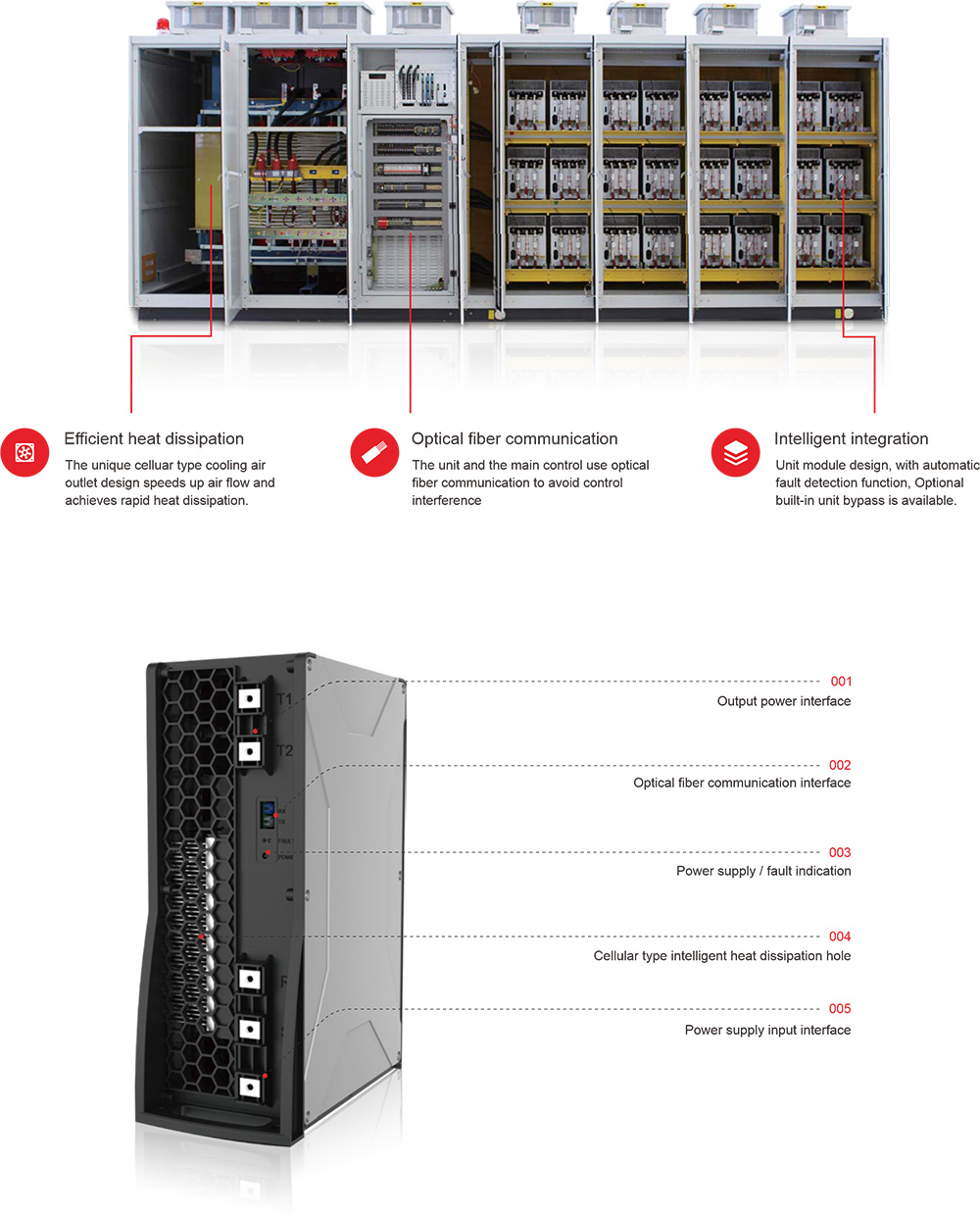 | Chức năng bảo vệ chính | Quá áp, quá dòng, ngắn mạch, quá nhiệt, cáp quang, v.v. |