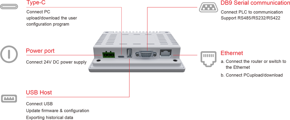 | Nô lệ USB | Type-C, Hỗ trợ nguồn, lập trình lên/tải xuống | ||