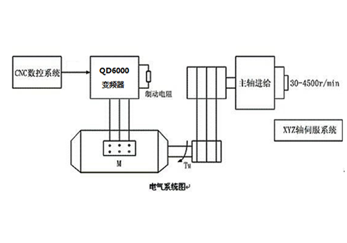 | 04 Giới thiệu hệ thống: Trong hệ thống này, trục chính của máy công cụ CNC 4KW được dẫn động bởi biến tần RVE32 5.5KW, việc hãm và dừng nhanh được thực hiện thông qua bộ hãm bên ngoài và điện trở hãm. Sự thay đổi tốc độ do thay đổi tải gây ra là rất nhỏ do điều khiển vectơ vòng hở. | | ||||||||||||||||||